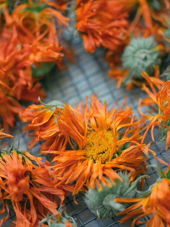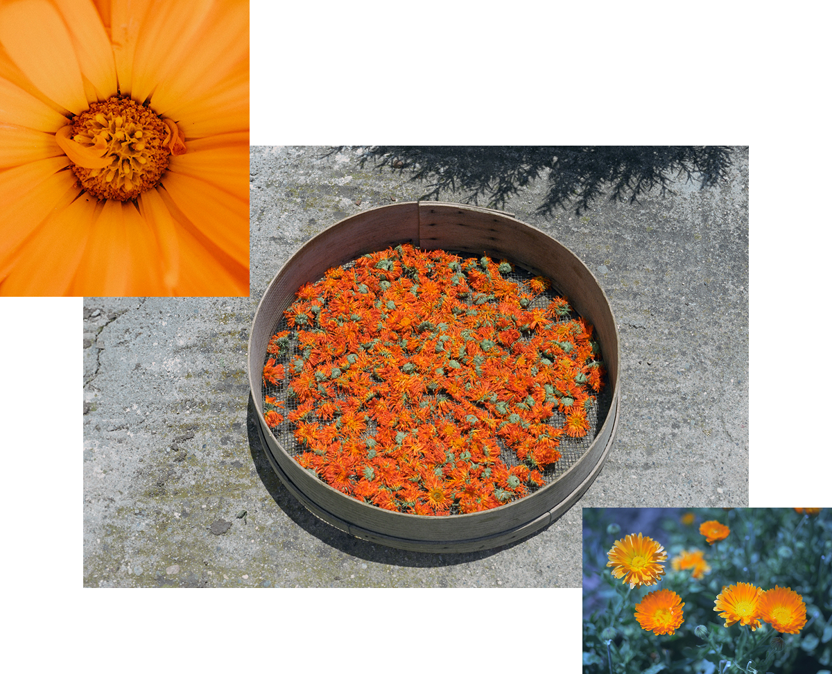 The organic calendula flowers are hand picked from April to October and transferred to the KORRES Extraction Laboratory.