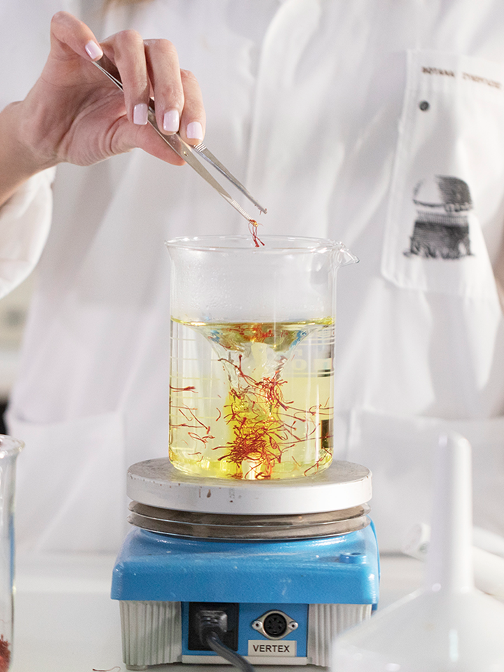 The precious Greek Saffron stigmas are taken to the KORRES Extraction Lab and stored in stable humidity and temperature conditions, while undergoing strict controls to ensure specific quality parameters, as per the ISO 3632 standard.
