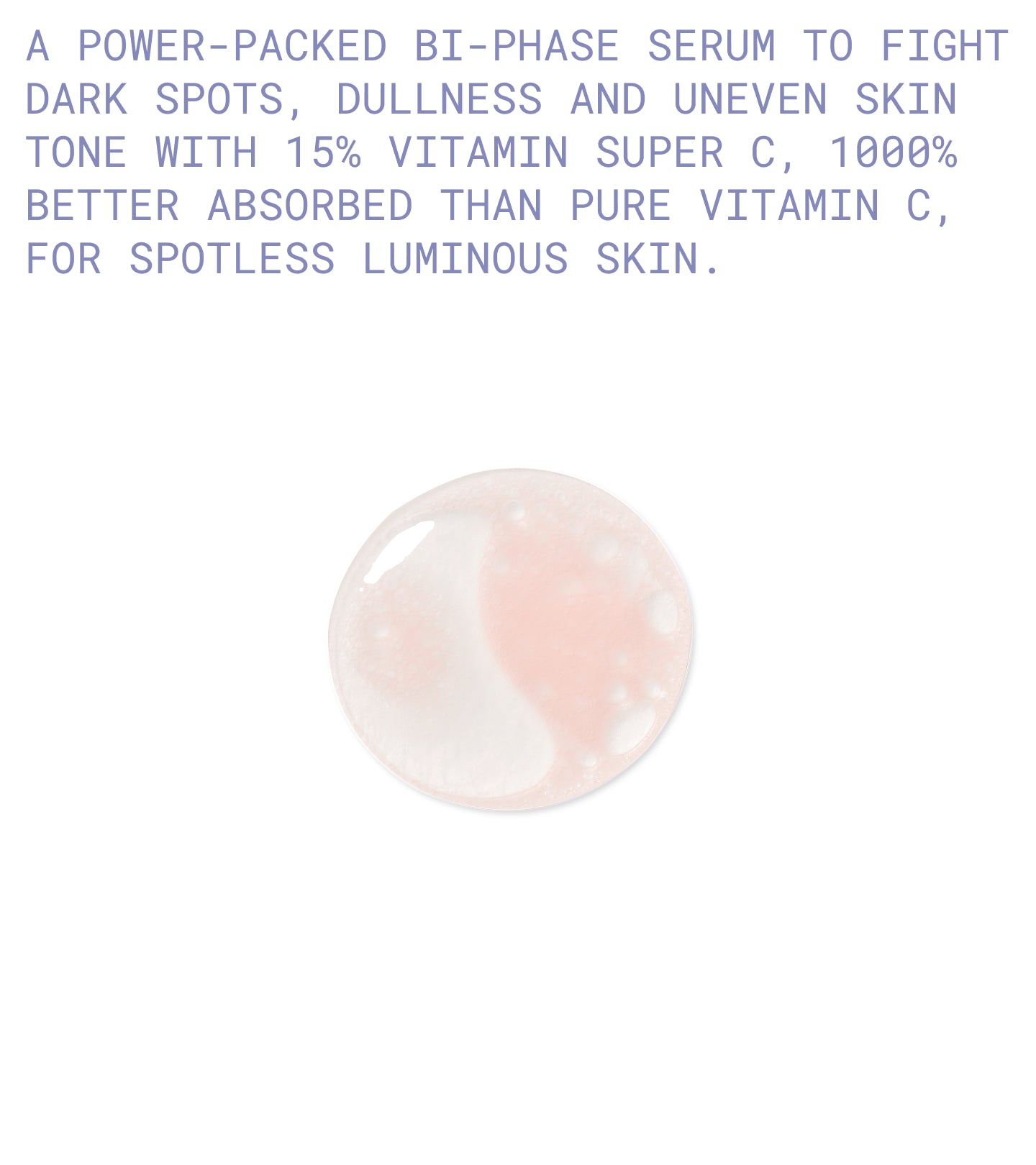 Leistungsstarker Zwei-Phasen-Booster mit 15 % Super Vitamin C zur Bekämpfung von dunklen Flecken sowie fahlem und unebenmäßigem Teint, sorgt für eine makellose, strahlende Haut.