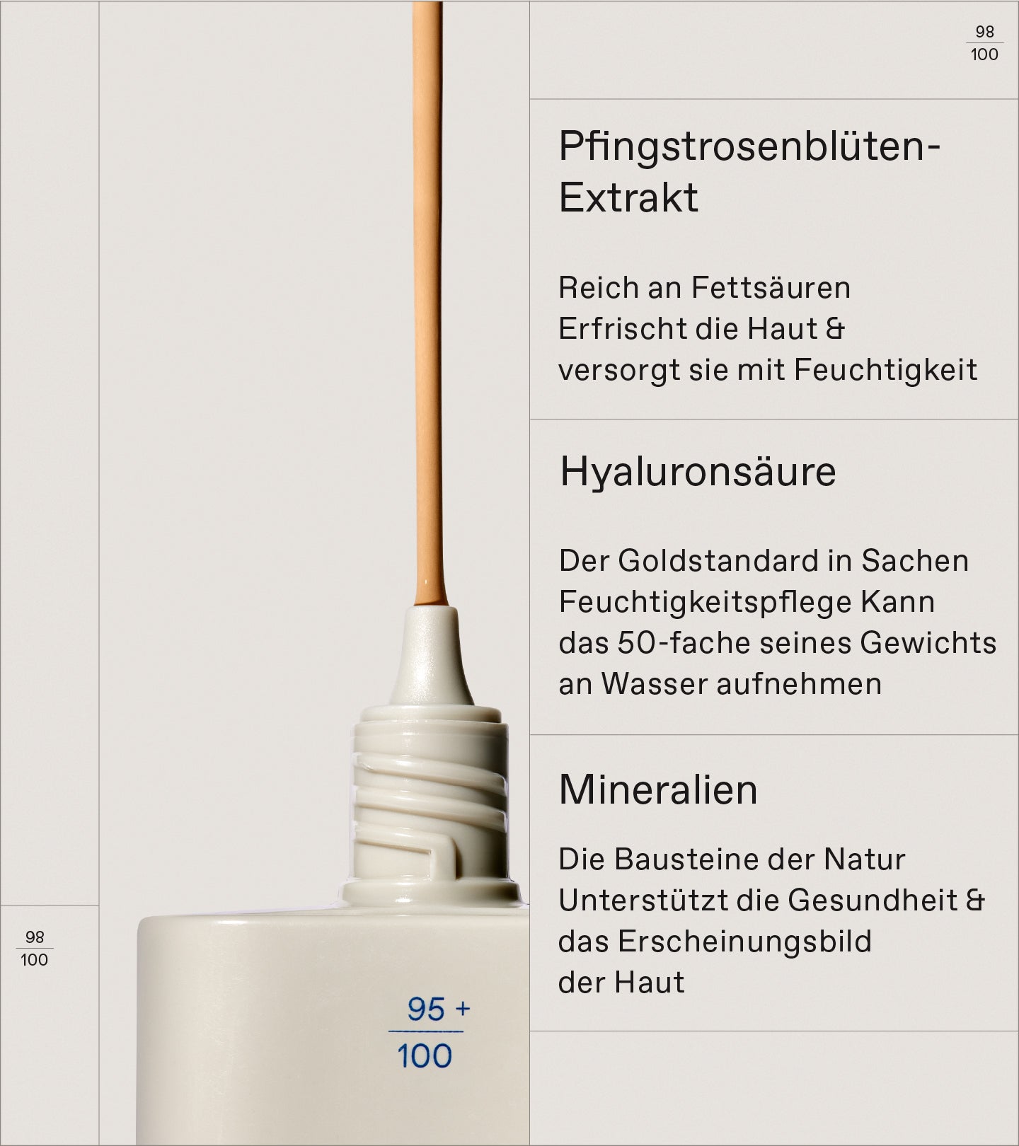 • Pfingstrosen-Extrakt- Beruhigt die Haut, wirkt antioxidativ und unterstützt einen ebenmäßigen Teint
