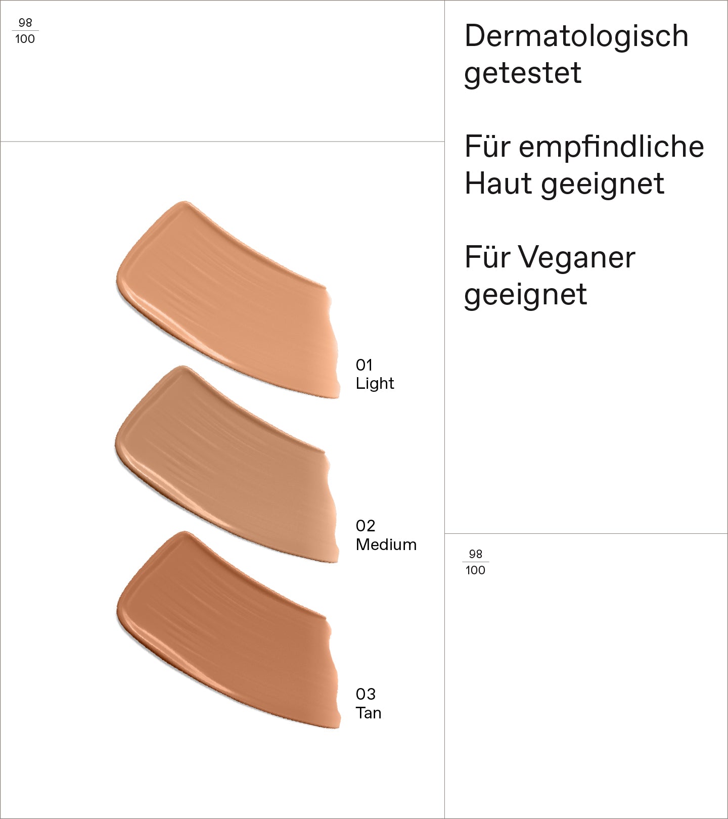 Eine leicht deckende Foundation mit sanfter Textur, die ein natürliches, strahlendes Finish für den idealen Bare-Skin-Effekt verleiht. Angereichert mit erfrischendem Pfingstrosen-Blütenextrakt, feuchtigkeitsspeicherndem Glycerin und weiteren feuchtigkeitsspendenden Wirkstoffen für eine optimale Feuchtigkeitszufuhr und einen sofortigen, frischen Glow.