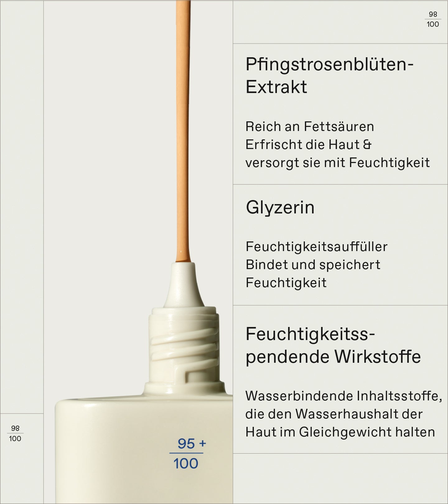 Eine leicht deckende Foundation mit sanfter Textur, die ein natürliches, strahlendes Finish für den idealen Bare-Skin-Effekt verleiht. Angereichert mit erfrischendem Pfingstrosen-Blütenextrakt, feuchtigkeitsspeicherndem Glycerin und weiteren feuchtigkeitsspendenden Wirkstoffen für eine optimale Feuchtigkeitszufuhr und einen sofortigen, frischen Glow.