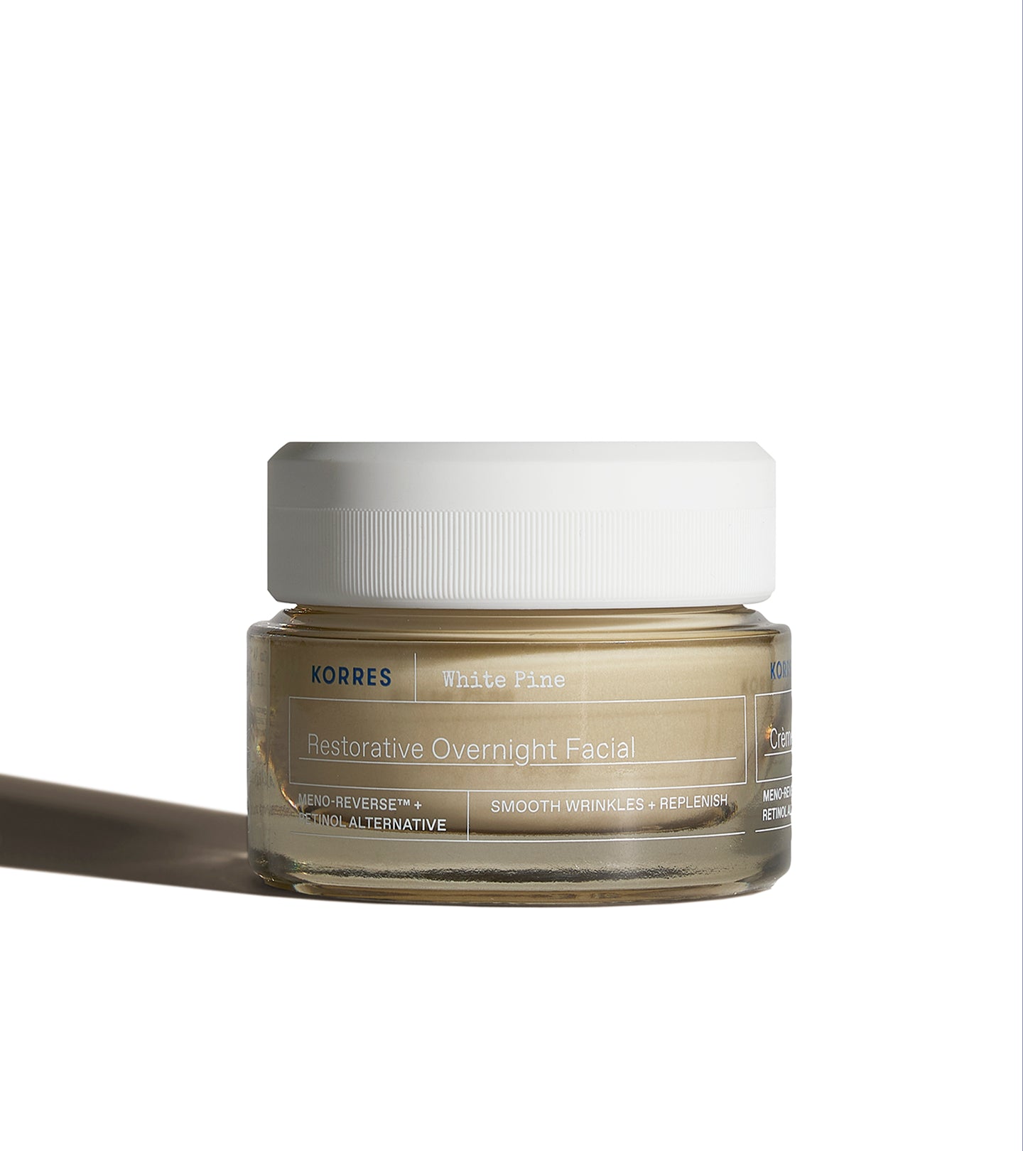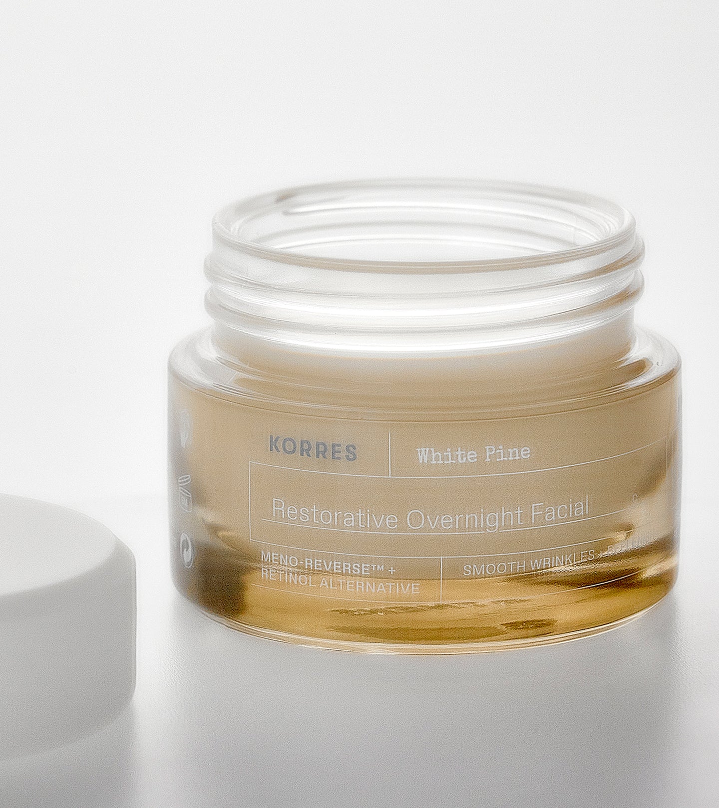 Eine Nachtcreme, die mit einer Retinol-Alternative den trockenen, postmenopausalen Feuchtigkeitsverlust der Haut stoppt und Falten der Haut auffüllt und glättet, während die Haut in ihrem nächtlichen Regenerationsmodus ist.